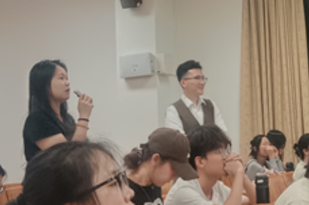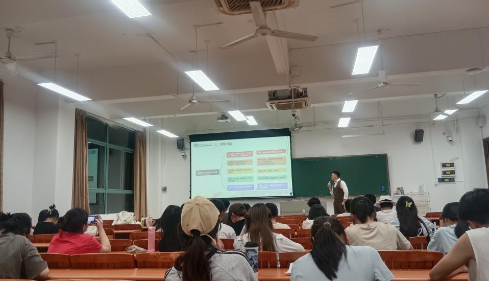 为增进同学们的互动交流、激发思维碰撞,黄一海随机邀请两位同学进行分享。第一位同学大方起身,模拟面试教师岗位。她表示自己一直热爱教育事业,希望凭借知识和耐心助力学生成长,成为一名优秀的英语教师。第二位同学分享了留学期间在日本大阪的兼职经历,尽管起初被老板拒绝,但凭借自身努力赢得机会,创造价值的同时也实现了个人就业经验的提升。