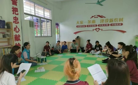9月16日,外国语学院指导老师、项目团队负责人、团队课程成员一同前往九潭村小站家,与秀全街社工服务站、秀全街团工委的老师们一起参加“九潭村小站家益学课堂志愿者培训活动暨启动仪式”,对美育课程项目开展、过程要求、注意事项等事宜相互交流。