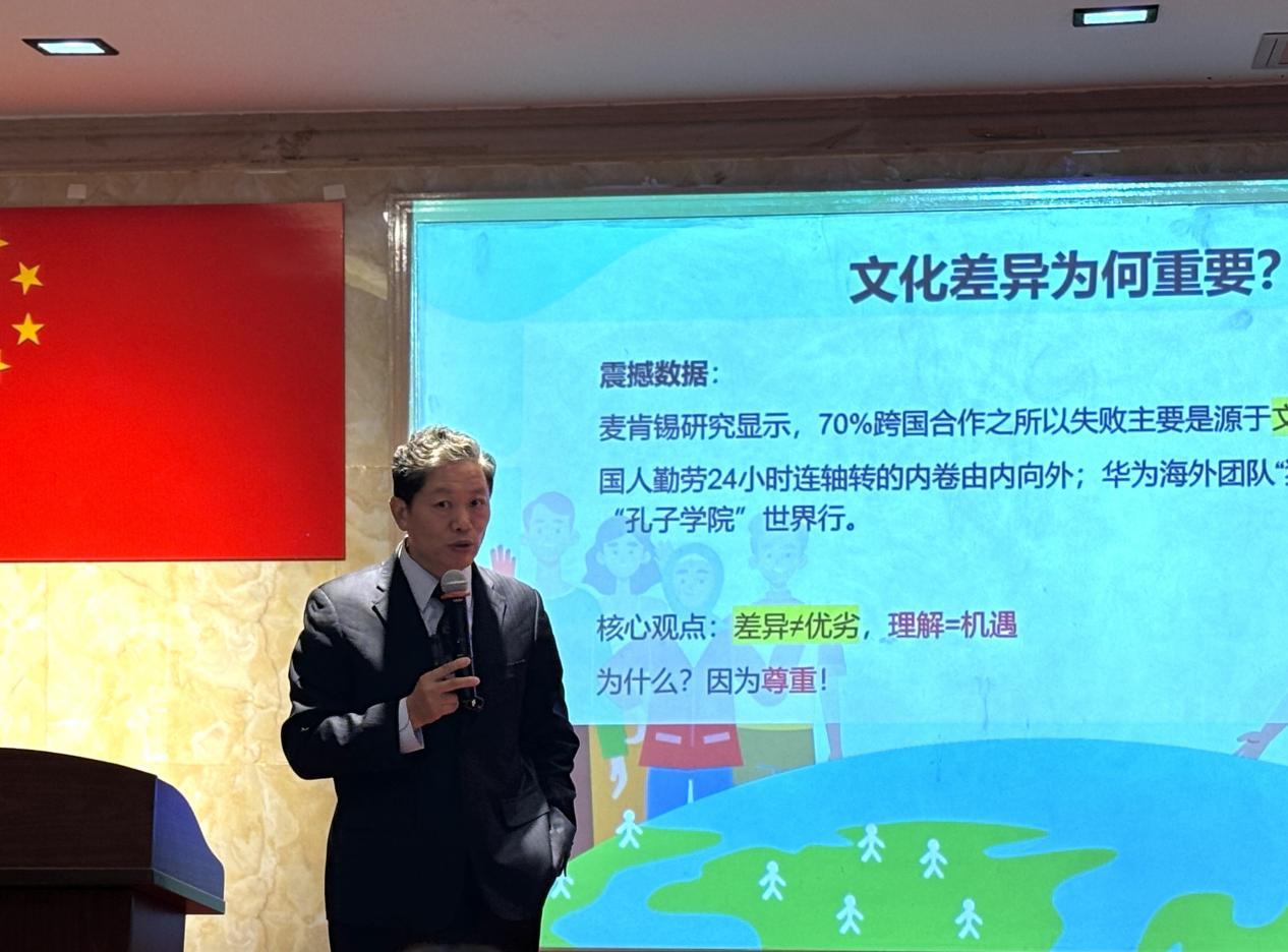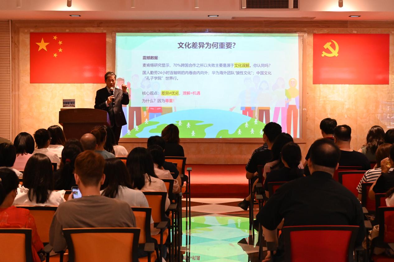 刘保春博士进行《中外文化差异与应对策略》讲座 (蔡晓坤 摄)