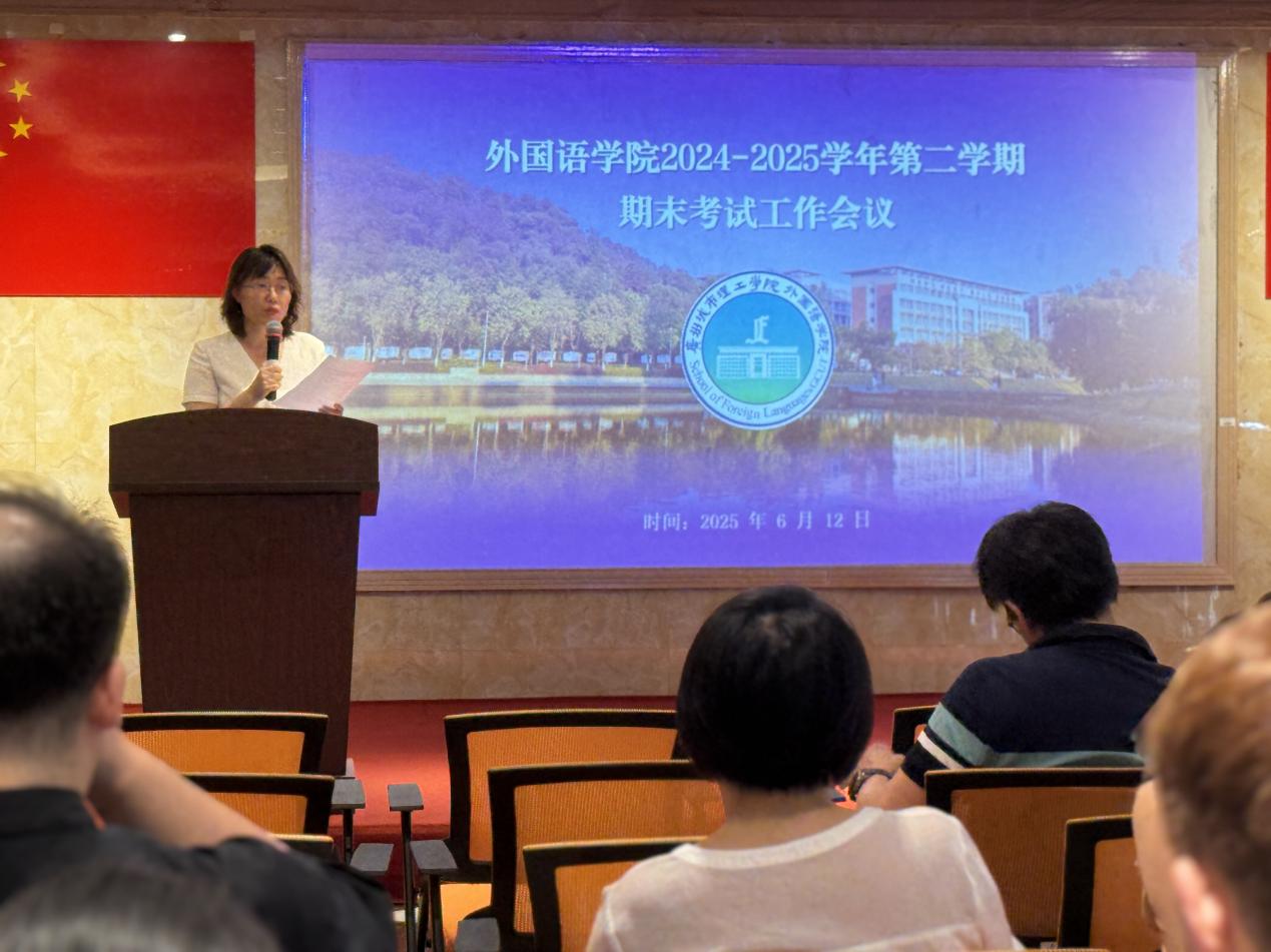 本网讯(记者 林春花、邓昕婧)2025年6月12日下午,外国语学院召开2024-2025学年第二学期期末考试工作会议。会议就严格执行期末考试监考、巡考相关规章制度、深化期末考试资料的评阅、整理及归档流程等问题进行了详细的培训和工作部署。外国语学院副院长乔世燕以及全体教职工参与本次会议。