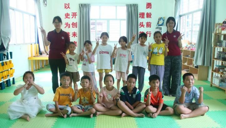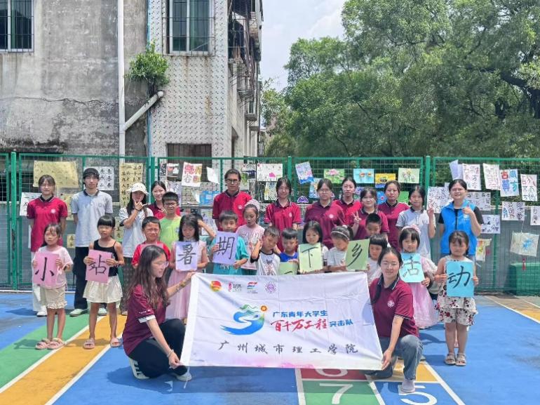 本网讯(记者 豆芹兰、何洁怡、莫菲菲、李嘉盈)为深化广东省“百县千镇万村高质量发展工程”实践,引领青年学子赋能基层。7月7日至16日,广州城市理工学院外国语学院共建“幸福九潭”实践团在花都区九潭村流书社党群服务红色驿站二楼“小站家”组织开展了为期10天的暑期“三下乡”社会实践活动。活动聚焦九潭村城中村儿童美育教育,开设绘画与手工、音乐、书法、舞蹈、朗诵与表演五类课程,累计完成20节授课及1次总结分享,吸引约300人次参与,为乡村儿童成长注入美育力量。