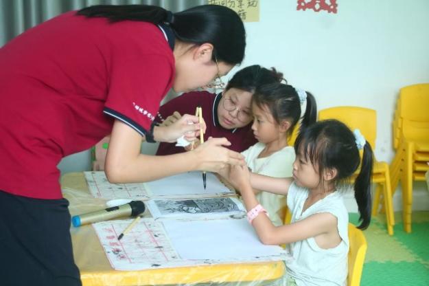书法课堂里,实践团成员胡瑾睿、胡奕将软笔与硬笔教学结合,从硬笔的横平竖直到软笔的提按顿挫,耐心纠正孩子们的姿势。课堂还融入甲骨文的古朴、小篆的圆润,让孩子们触摸文字的演变。更用粘土捏出笔画、卡纸板拼集字形,在动手间理解横竖撇捺的妙处,墨香与创意交织,让写字变成一场有趣的探索。