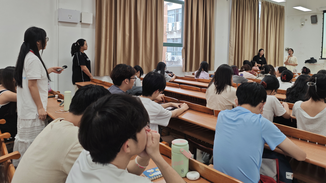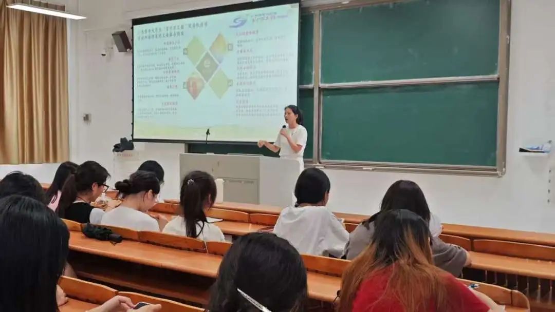 接下来,九潭村小站家美育支教项目负责人何洁怡同学就暑期三下乡活动相关安排,从队伍组建,到课程完善,到最后的经费报销、成果转化,详细地向在座同学分享。她还鼓励同学们多领域开展活动,在各类实践中磨砺自我。