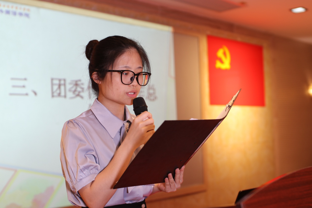 议程第三项:工作心得,共话成长。外国语学院团委、学生会及文艺团代表依次登台,围绕部门职能、工作成果、经验反思展开汇报。从思想引领活动策划,到校园文化活动落地;从服务同学实际需求,到文艺舞台精彩呈现,详实梳理工作脉络,分享协作心得,展现团学组织 “全心全意为同学服务” 的宗旨践行。