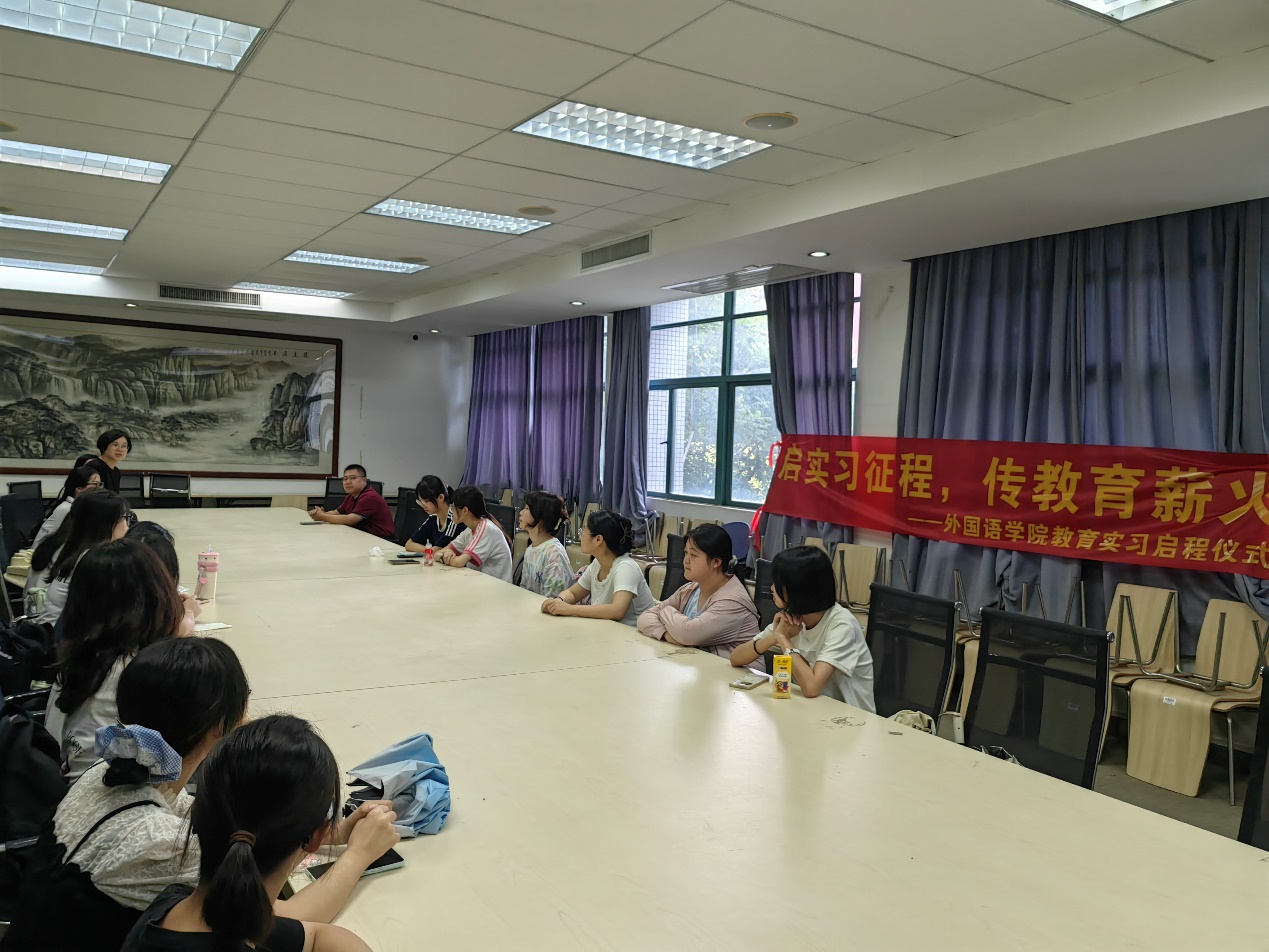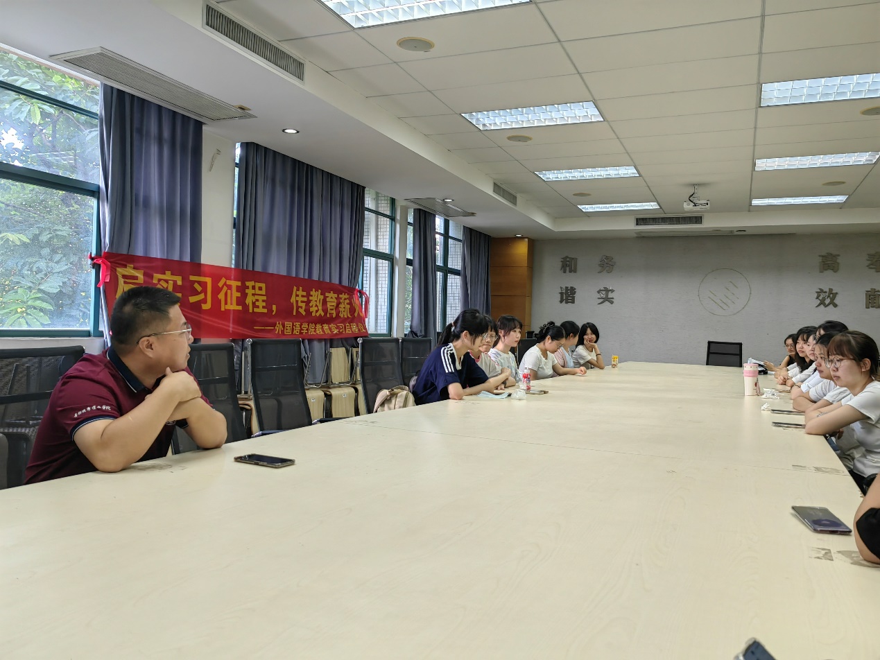 本网讯(记者 李小蕾)为深化实践教学改革,助力外语专业学子将理论知识转化为教育教学能力,9月1日早晨,外国语学院在A6-109举行“启实习征程,传教育薪火”主题教育实习启程仪式。学院党总支常务副书记李伟、英语教研室主任叶玉珊、学工办教师代表及15名即将奔赴实习岗位的学子参会,共同为这场连接校园与一线教育的“实践之旅”拉开序幕。
