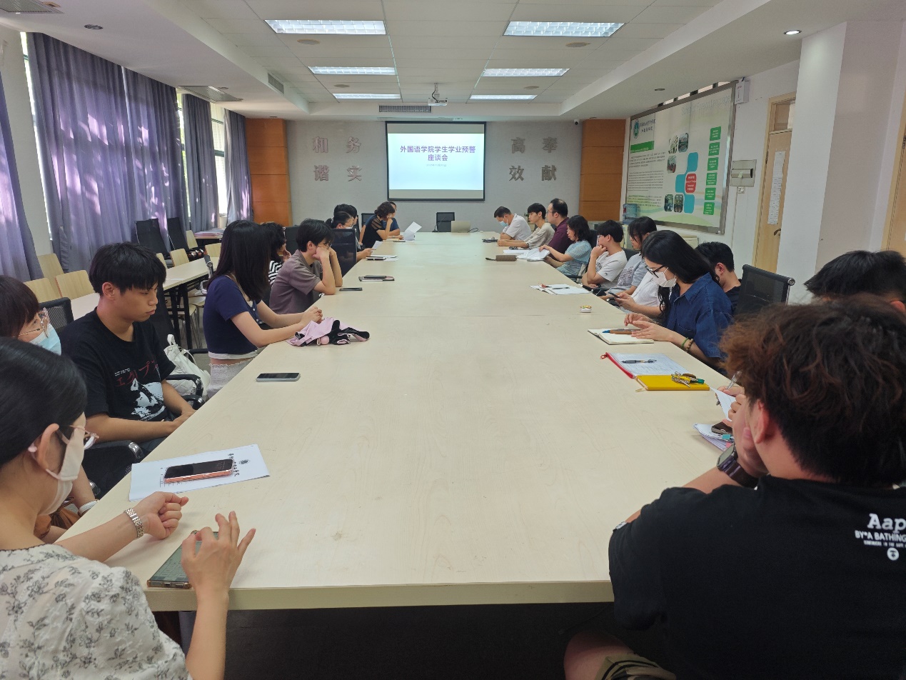 本网讯(记者 李小蕾)为切实解决学业预警学生的学习难题,帮助其明确学习方向、提升学业水平,10月16日下午,外国语学院在A6-107召开学业预警学生专题座谈会。学院常务副书记李伟、教学副院长乔世燕,以及学业预警学生及其班主任、辅导员、教务员共同参会,以“精准对接、靶向帮扶”为核心,为预警学生量身定制学业提升路径。