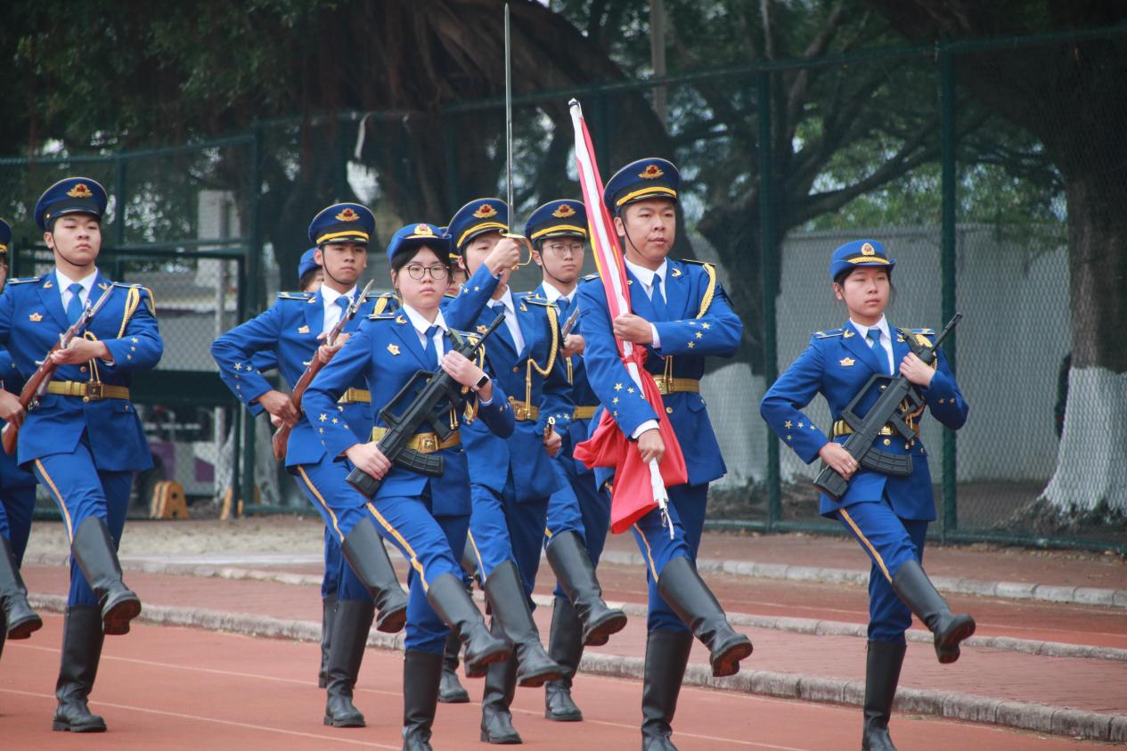 国旗飘扬,激荡爱国情怀。早上7时40分,仪式正式开始。随着“出旗”口令,国旗护卫队队员肩擎鲜艳的五星红旗,迈着铿锵有力、整齐划一的步伐,庄严护卫国旗走向升旗台。